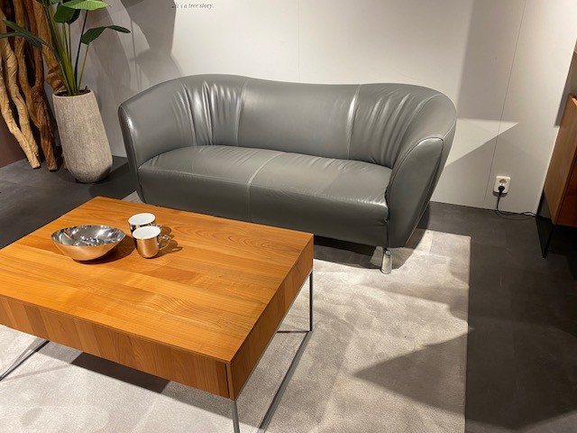 Bank LEOLUX model Pupilla in leder. 1.80 cm Chroom mat pootje.