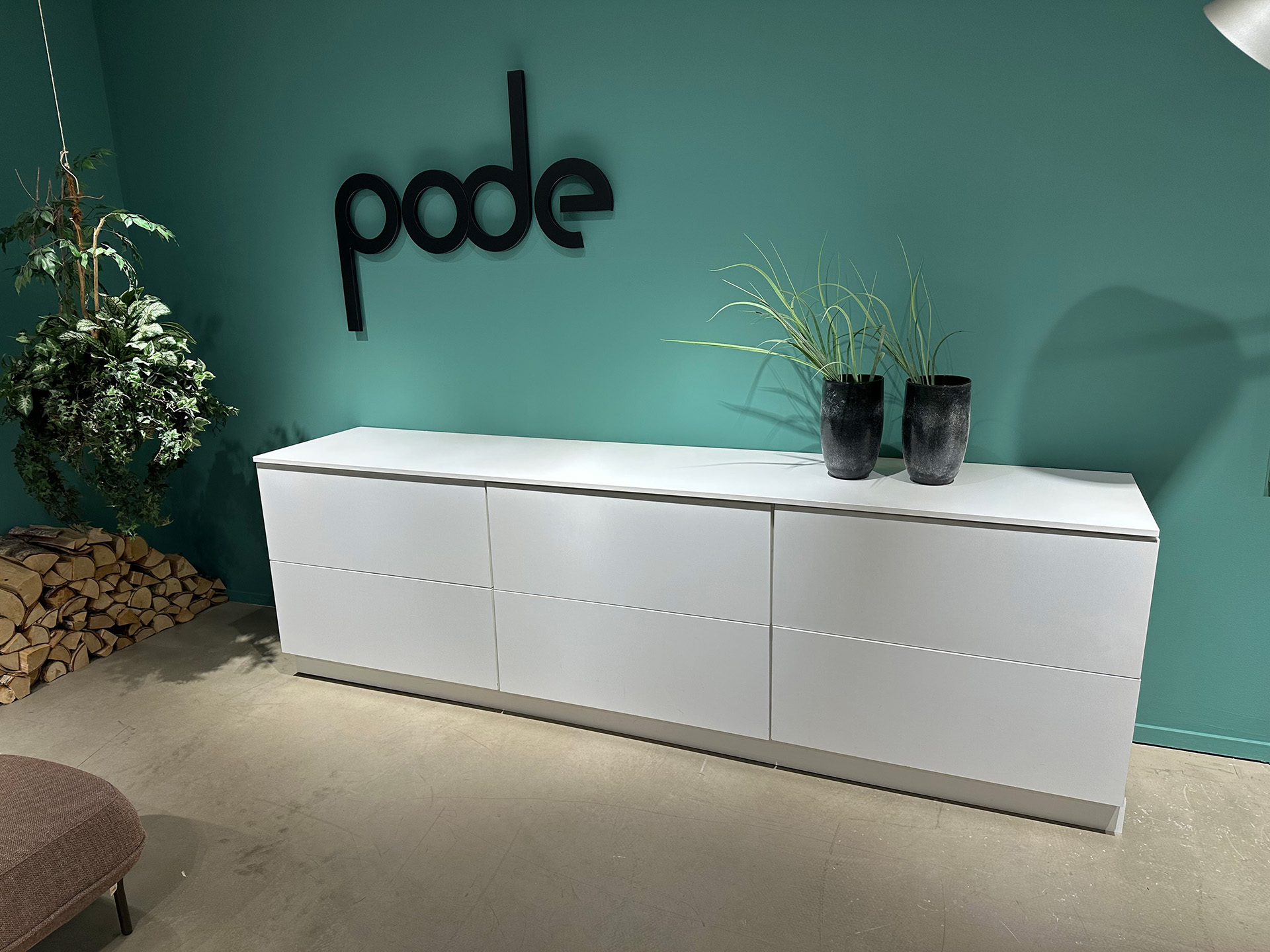 Dressoir met 6 grote lades in wit uitgevoerd. Spaanplaat met witte afwerking fineer. Maat 2.80 x 58 diep x 85,5 hoog