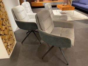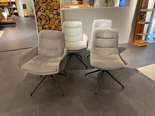 4x Eetkamer stoel (2x met en 2 x zonder arm) leder / stof. Draaibaar.
