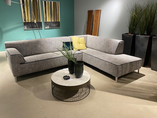Hoekbank PODE / LEOLUX model Insert. Stof met lederen bies.